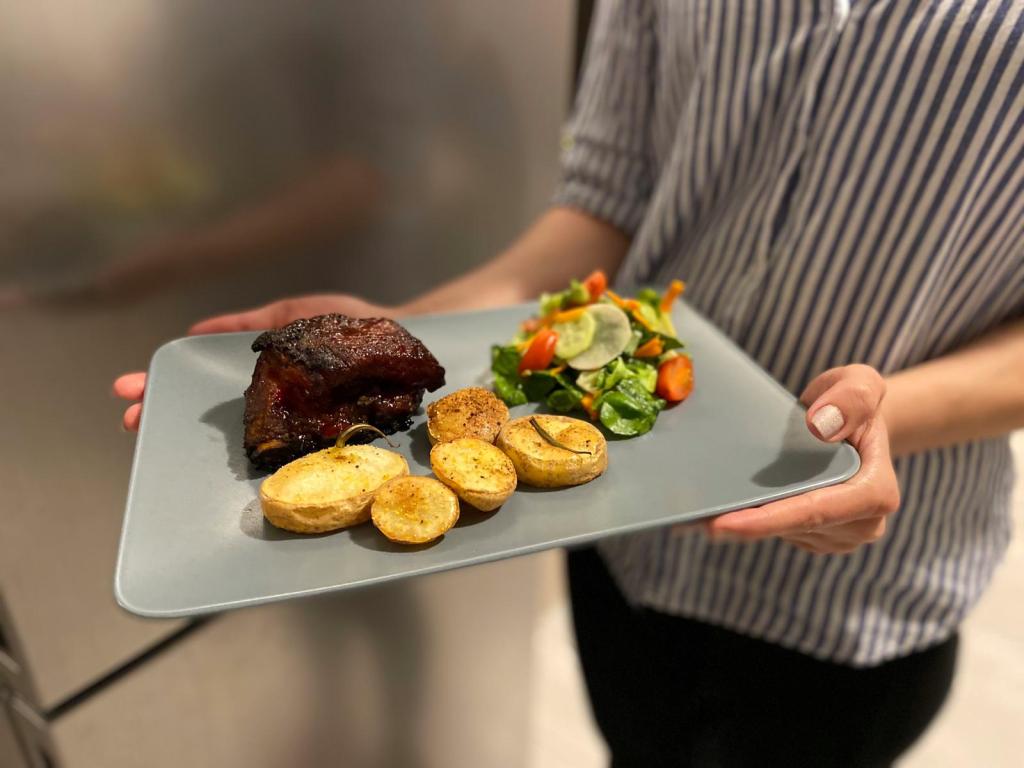 Între timp am pregătit un dressing din BBQ sos și miere, pentru câtă carne am avut eu am folosit o lingură de miere și două linguri de sos BBQ.