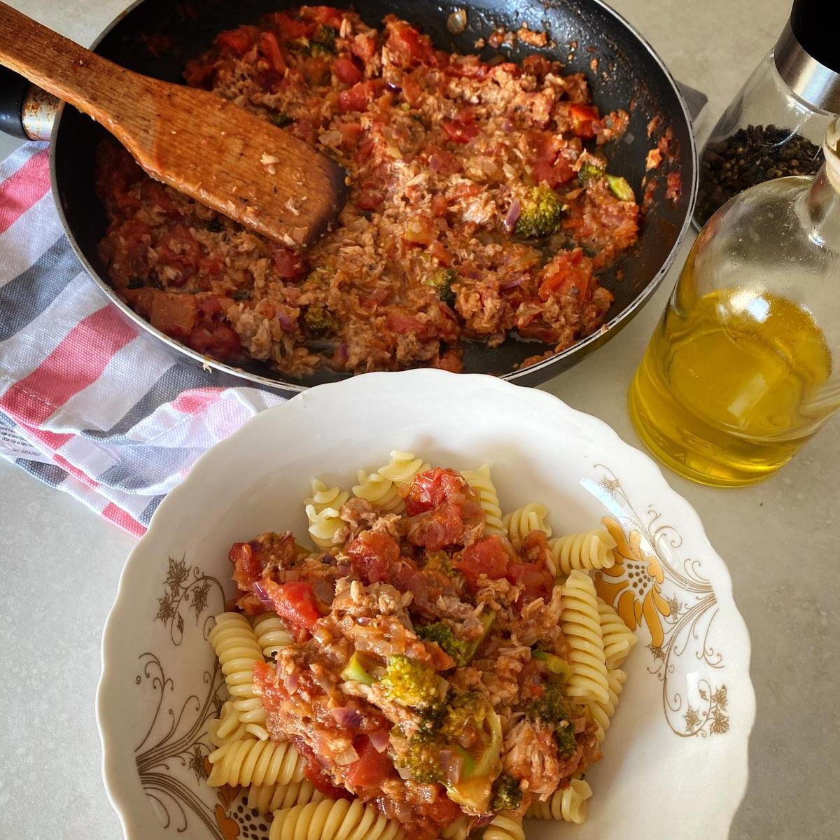 Hello, hei! Astăzi nu știam exact ce să gătesc și nici nu aveam prea mult timp la dispoziție pentru gătit și mâncat.. Așa că am aruncat o privire în frigider, să văd ce pot salva de pe acolo… și am găsit câteva buchețele de brocoli (care se cereau salvate de câteva zile) și o conservă de roșii începută, dar era aproape plină. Mi-am amintit că aveam și o conservă de ton în cămară și așa am ajuns la ideea de a face paste ❤!