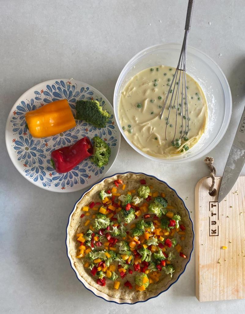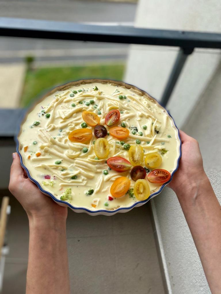 Astăzi am făcut cumpărăturile săptămânale și am luat chiar multe legume – de aici mi-a venit și ideea de a face o tartă sărată. Mai ales că săptămâna trecută am cumpărat și o brânză Gouda de 700 grame. 😅
