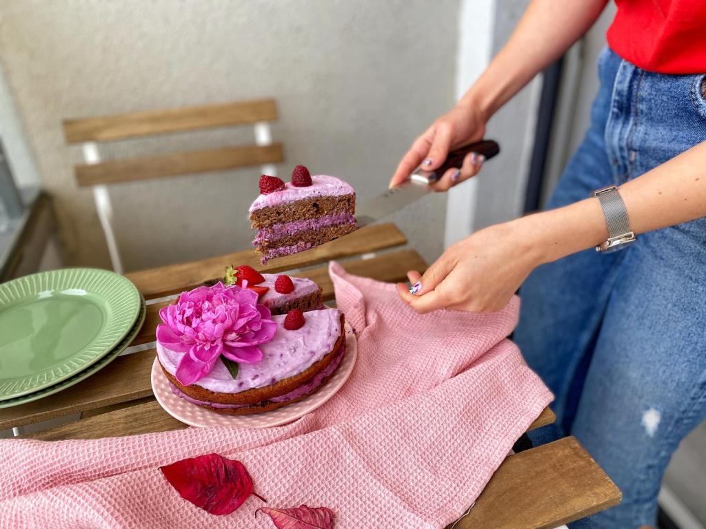 Blatul l-am tăiat cu un cuțit zimțat, dar doar după ce s-a răcit!