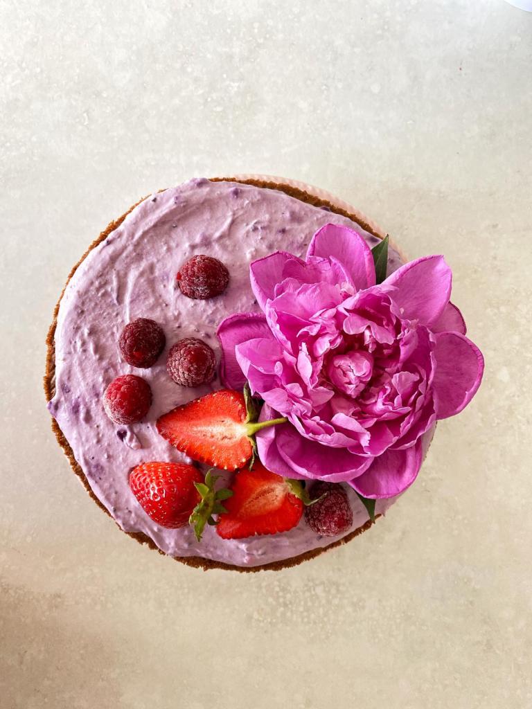 Pentru decor am folosit un bujor, doi căpșuni și câteva zmeurici!