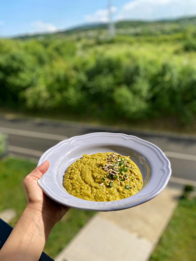 Am lăsat oala sub capac la fiert pentru 20 minute – dar neapărat să mai verifici! Iar ulterior am mai lăsat la fiert încă 5 minute fără capac. Cu ajutorul unui blender vertical am tocat toate legumele și am obținut această super supă! Eu am mâncat cu câteva cozi de ceapă verde și un mix de semințe rumenite puțin înainte în tigaia curată!