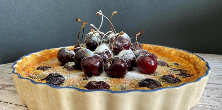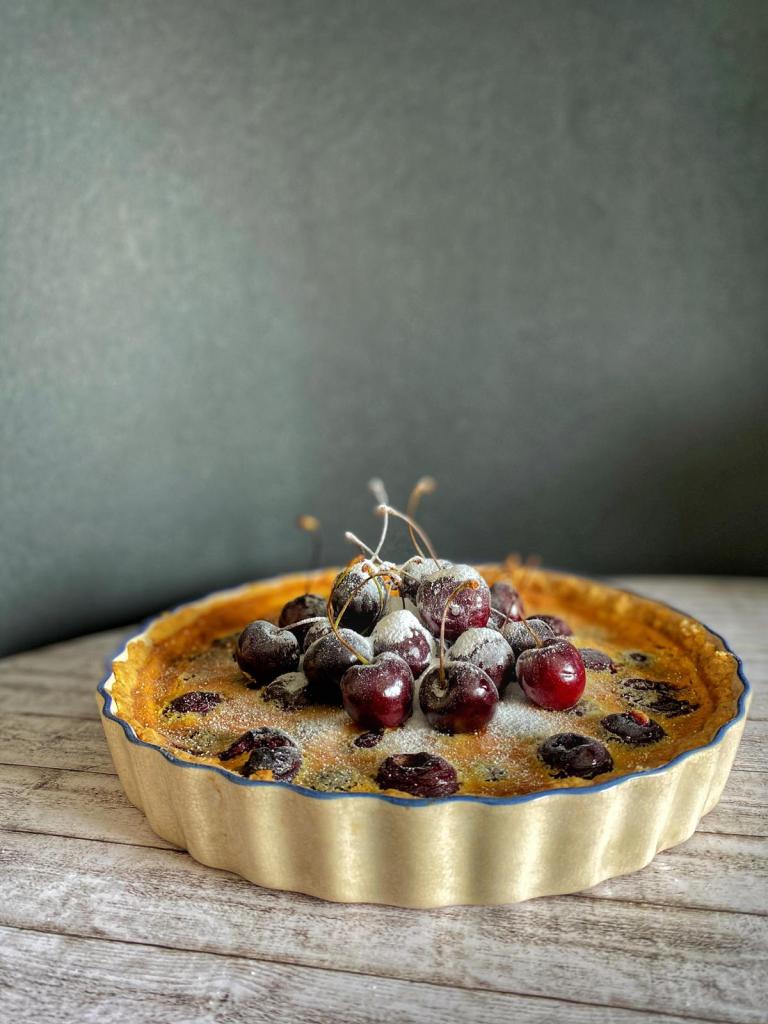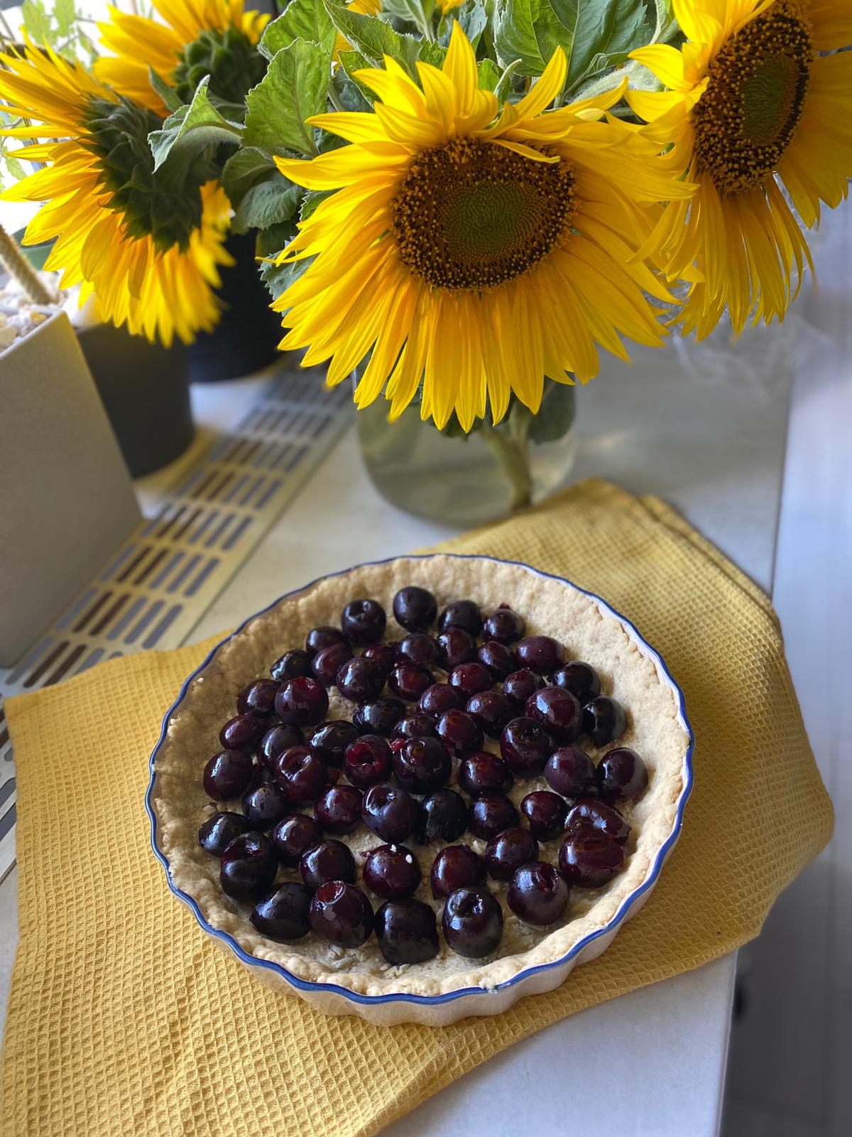 • aprox 300 gr cireșe curățate de sâmburi – trebuie să ajungă în toată tarta