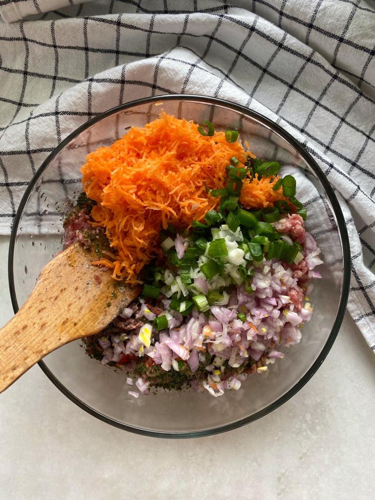 Modul de preparare este foarte simplu: se amestecă toate ingredienele bine și se modelează chifteluțele!