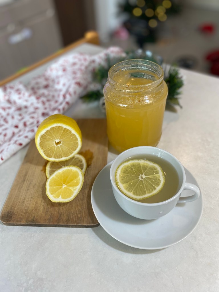 În cana în care servesc ceaiul adaug jumătate de linguriță de miere 🍯, două felii subțiri de lămâie 🍋 și puțin suc stors din lămâie.