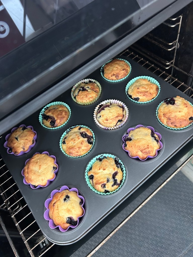 Tava o așez pe raftul din mijloc al cuptorului și la briosele la copt aproximativ 27 minute.