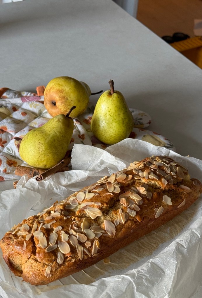 Chiar ieri am cumpărat 3 kg de pere de la o doamnă din cartier și la fix a mers să pun una în chec!