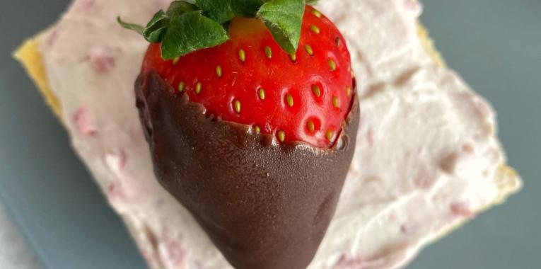 Iar cireașa de pe tort, în cazul nostru, este o căpșună învelită în ciocolată amăruie! O explozie de gusturi!